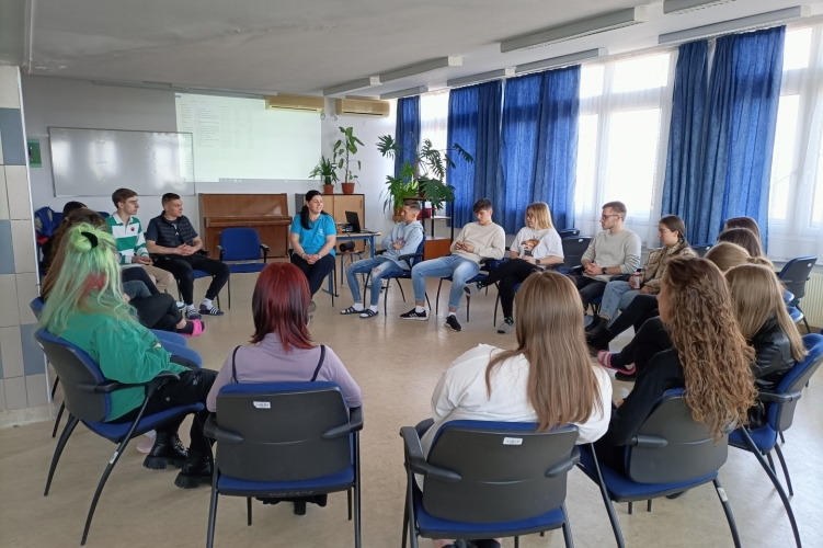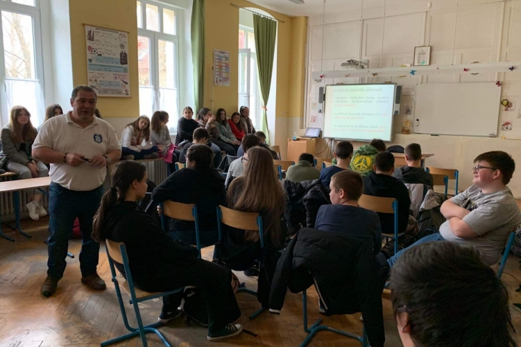 A jászberényi bűnmegelőzési szakember interaktív formában tartott előadást 13-14 éves gyerekeknek.