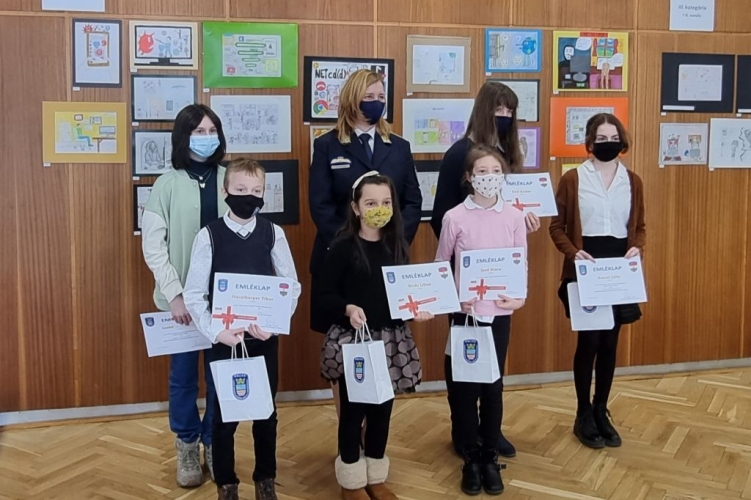 A megyei rendőr-főkapitányság Bűnmegelőzési Osztály munkatársai szervezésében, a biztonságos internethasználattal összefüggő rajzpályázat nyerteseinek díjazására került sor a rendőrség nagytermében 2022. február 8-án a délelőtti órákban.