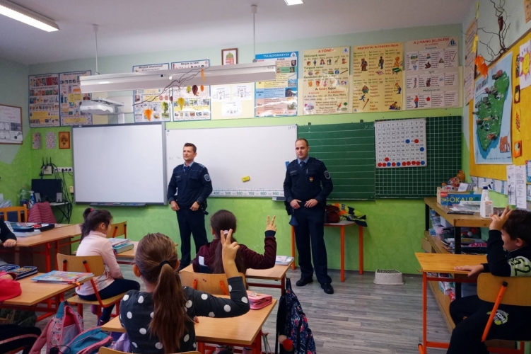 A rendőrök a helyi Ramassetter Vince Testnevelési Általános Iskolában tartottak prevenciós foglalkozást.