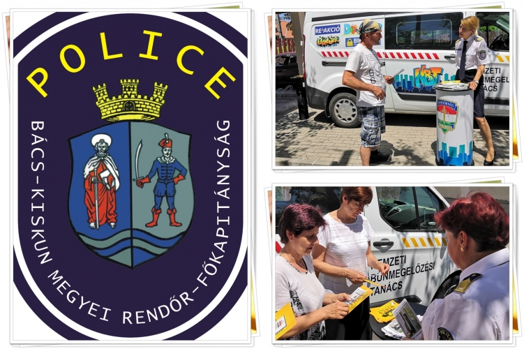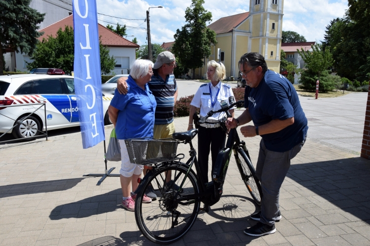 A Bács-Kiskun megyei egyenruhások a helyi polgármesteri hivatal előtt válaszoltak a lakosság kérdéseire.