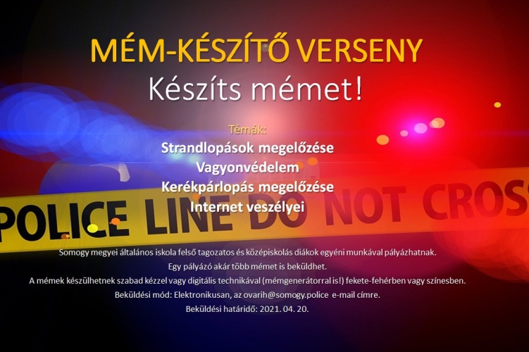A Somogy Megyei Rendőr-főkapitányság a bűnmegelőzés világnapja alkalmából mém-, illetve, time lapse videó készítő pályázatot hirdet Somogy megyei iskolák diákjai részére.
