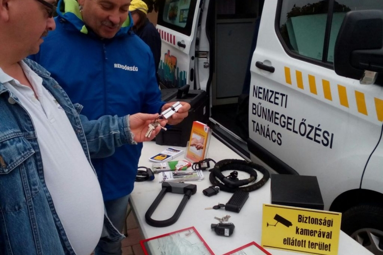 A Nemzeti Bűnmegelőzési Tanács és a rendőrség közös programsorozatának keretében, a Mobil Bűnmegelőzési Centrum kisbusza mellett kialakított standnál szólították meg a járókelőket a rendőrök.