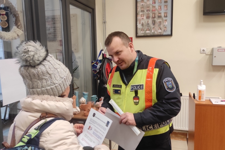Ajándékokkal lepte meg az iskolarendőr a pápai Evangélikus Iskola tanulóit.