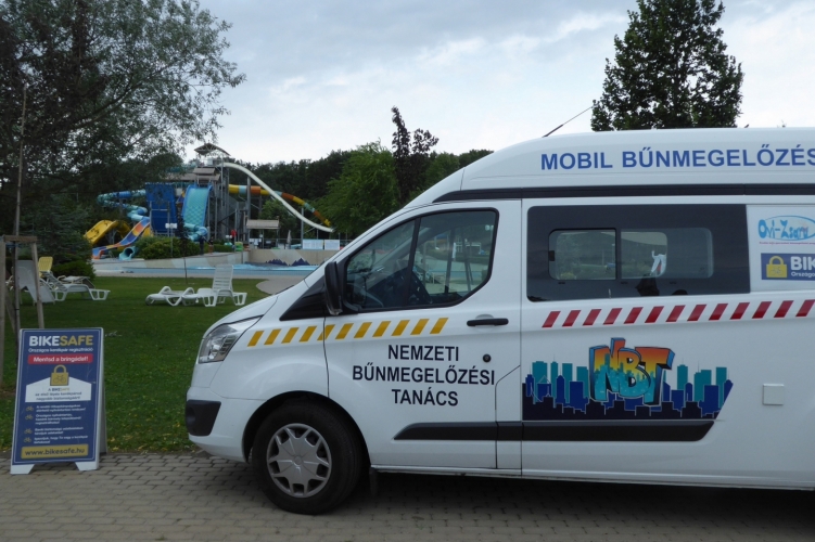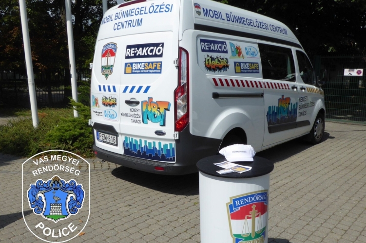 A sárvári Gyógy- és Wellnessfürdő területén feltűnést keltett a Mobil Bűnmegelőzési Centrum.