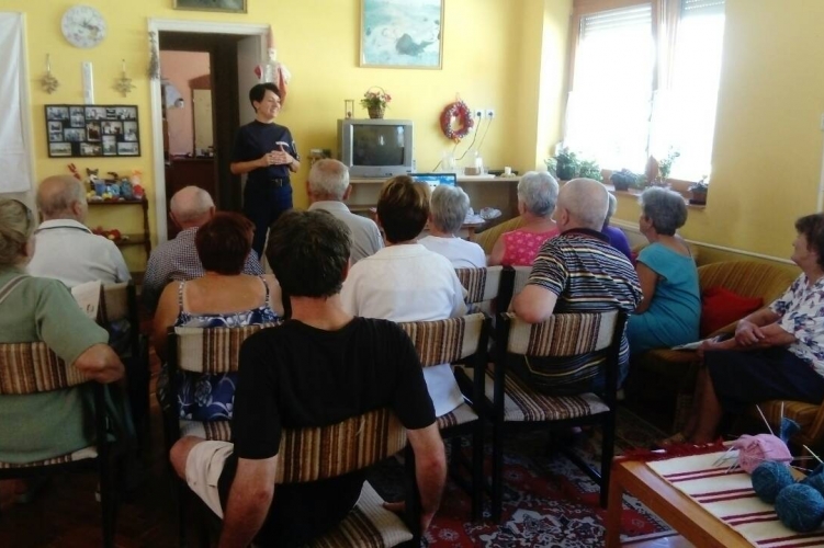 A bűnmegelőzési szakember nyugdíjasoknak tartott vagyonvédelmi előadást Dunaszekcsőn.