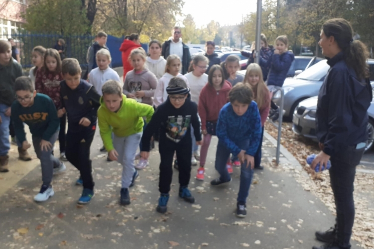 Az iskolakört leggyorsabban lefutó diákok bűn- és baleset-megelőzési ajándékcsomagot vehettek át.