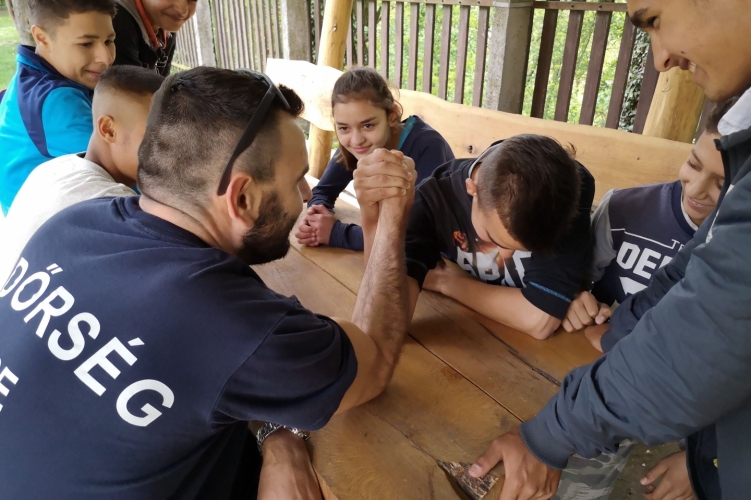 A dombóvári rendőrök is részt vettek a diákoknak szervezett programon, melyen az iskola rendőrét még szkander bajnokságra is kihívták a gyerekek.