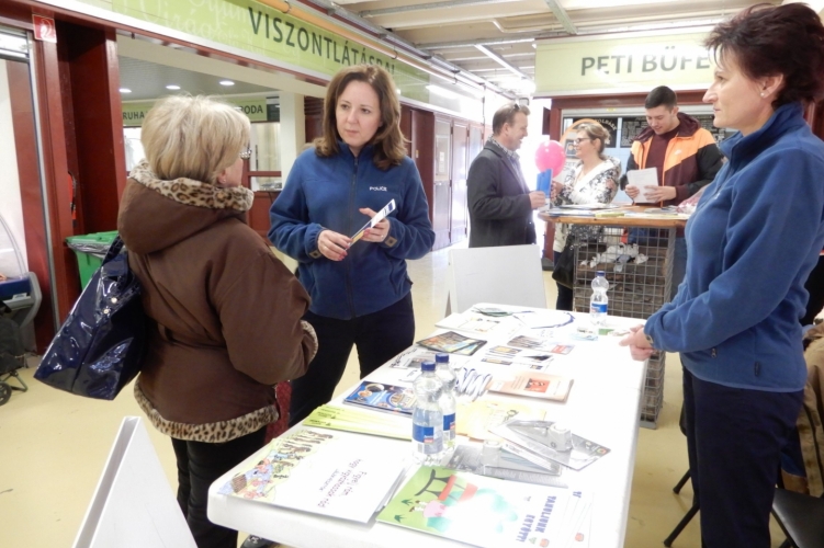A bűnmegelőzési szakemberek kávéval és vagyonvédelmi tanácsokkal várták a lakosságot.