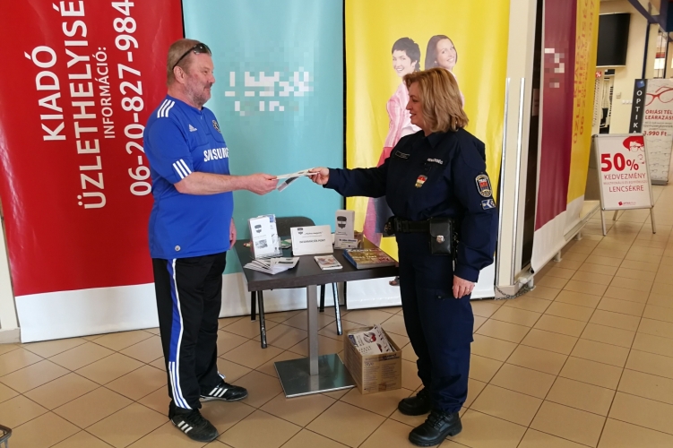 A városi rendőrkapitányság munkatársa információs pontot hozott létre a település egyik áruházában.