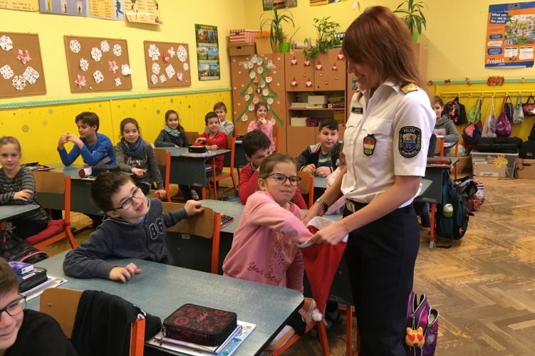 Iskolarendőr tartott prevenciós előadást általános iskolásoknak Szolnokon. A rendőrnő Mikulás-sapkája nem csak cukorkákat, de rengeteg hasznos tanácsot is rejtett.