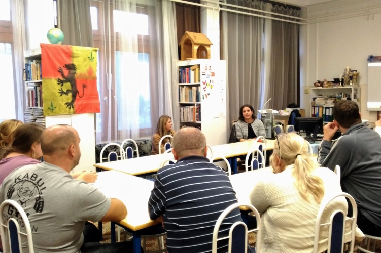 Iskolás gyerekek szüleinek tartott előadást a Debreceni Rendőrkapitányság bűnmegelőzési munkatársa.