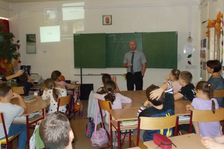 Az internet veszélyeiről tartott előadást a Szandaszőlősi Általános Iskola és Alapfokú Művészeti Iskolában a Jász-Nagykun-Szolnok Megyei Rendőr-főkapitányság bűnmegelőzési előadója.