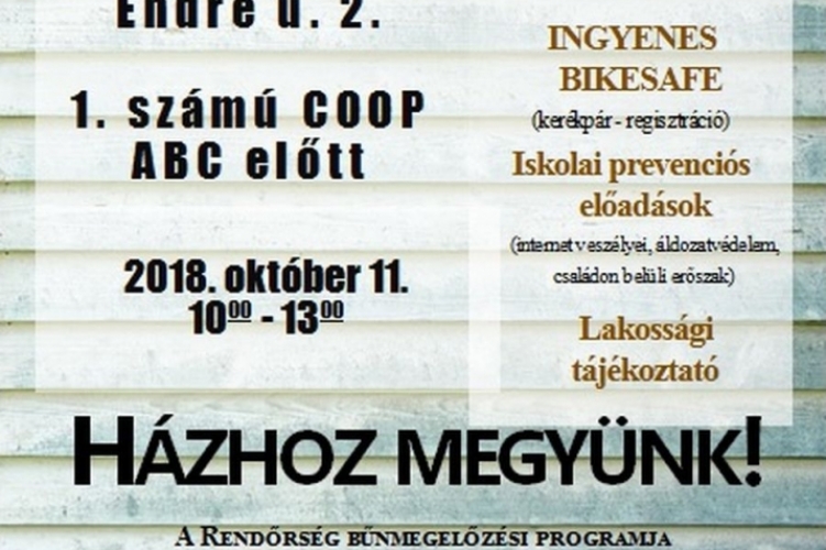 Az érdeklődők legközelebb 2018. október 11-én Csengerben találkozhatnak az országos bűnmegelőzési programmal.