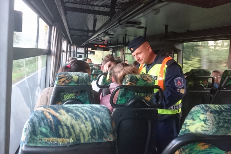 A tapolcai rendőrök a reggeli iskolabuszon adtak a diákok és az őket kísérő szülők számára hasznos bűn- és baleset-megelőzési tanácsokat.