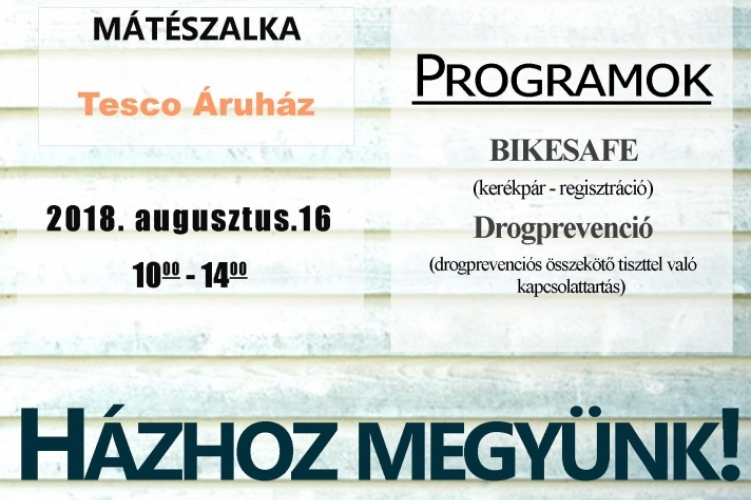 Az érdeklődők legközelebb 2018. augusztus 16-án Mátészalkán, a Tesco áruházban találkozhatnak az országos bűnmegelőzési programmal.