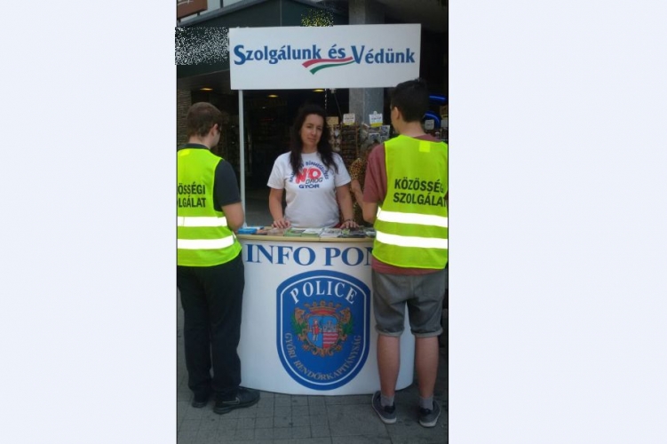 A Győri Rendőrkapitányság bűnmegelőzési szakembere a belvárosba telepített információs ponton tájékoztatta a kábítószer-használat veszélyeiről az érdeklődő fiatalokat.