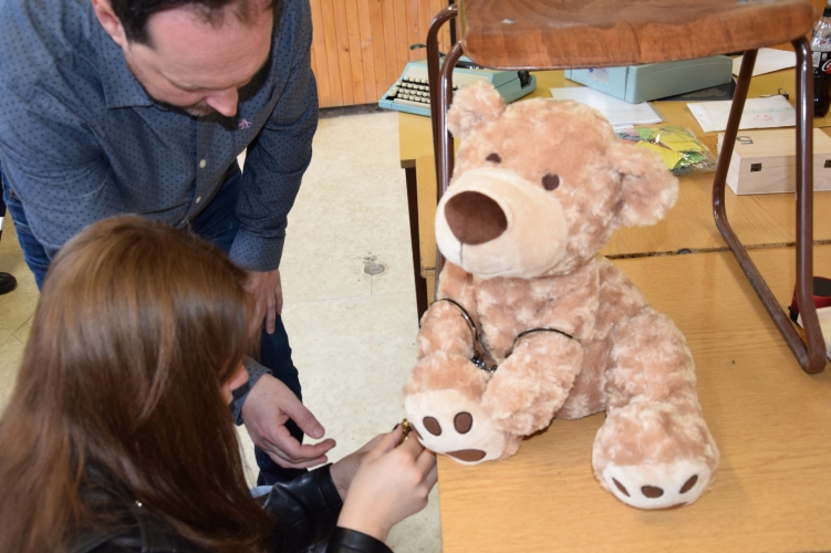 Egy veszprémi középiskolába látogattak el a rendőrök Gordon maci társaságában.