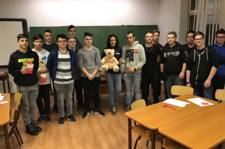 A Győri Rendőrkapitányság bűnmegelőzési tanácsadója egy győri középiskolába látogatott el Gordon maci társaságában.