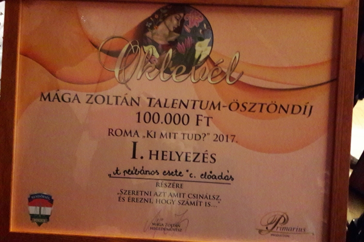 A Nagydobszai Általános Iskola diákjainak produkcióját a Mága Zoltán Talentum-Ösztöndíj I. helyezésével jutalmazta a zsűri.