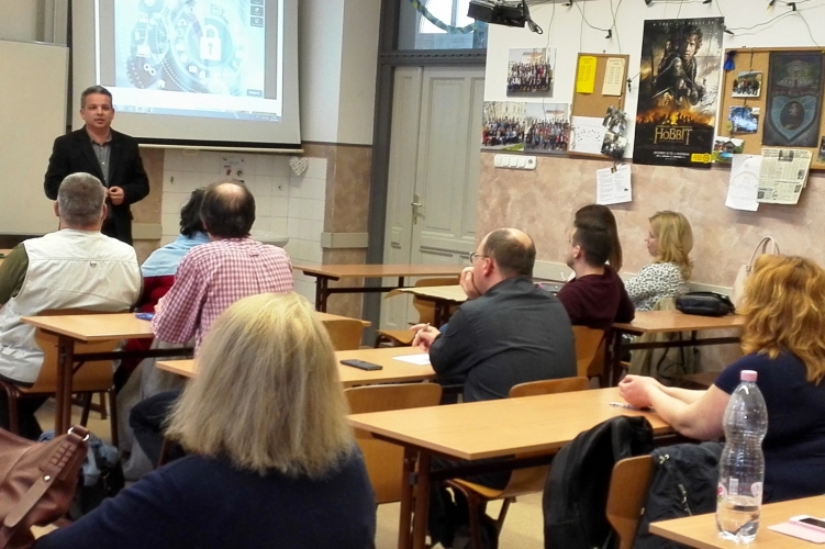 A megyei rendőr-főkapitányság bűnmegelőzési munkatársa 2017. április 6-án Győrben a Krúdy Gyula Gimnázium és Szakközépiskola tantestületi értekezletén tartott előadást a fiatalokat leginkább érintő internetes bűncselekményekről.