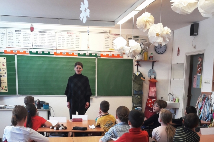 A Hajdú-Bihar Megyei Rendőr-főkapitányság bűnmegelőzési munkatársa biztonságra nevelő interaktív foglalkozást tartott általános iskolás gyerekeknek Bocskaikertben.