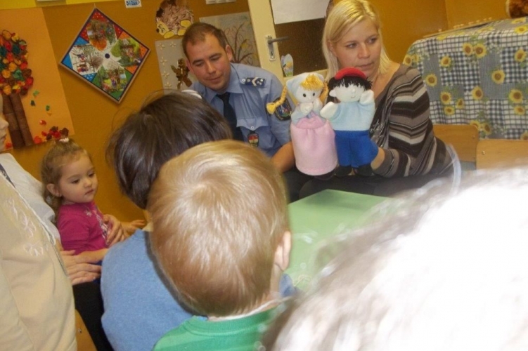 A salgótarjáni rendőrök a kézbábok segítségével mutatták be a veszélyhelyzetek elkerülésének lehetőségeit az óvodásoknak.