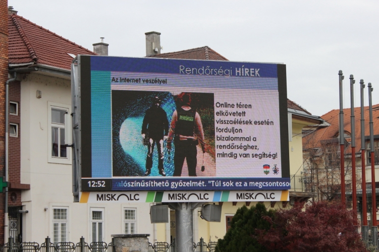 Kép és a szöveg egysége jellemzi a Borsod-Abaúj-Zemplén Megyei Rendőr-főkapitányság legújabb bűnmegelőzési üzeneteit, amelyek először az országosan is egyedülálló miskolci csúcsminőségű óriáskivetítőkön jelentek meg.