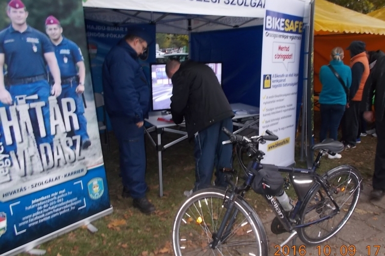 A Hajdú-Bihar Megyei Rendőr-főkapitányság munkatársai bűnmegelőzési tanácsokkal látták el a kerékpár tulajdonosokat a debreceni őszi Mihály-napi nagyvásárban.