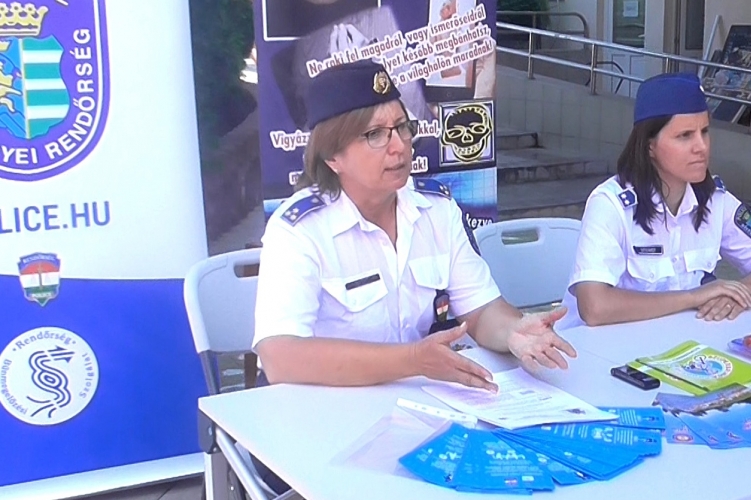 Békéscsabán, a strandon adtak bűnmegelőzési és baleset-megelőzési tanácsokat a rendőrség munkatársai.