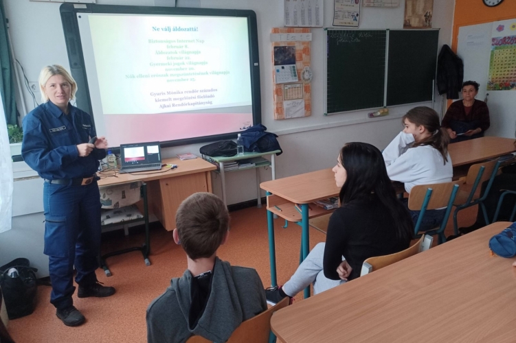 A Somogy Vármegyei Rendőr-főkapitányság bűnmegelőtési szakembere 2023. november 16-án egy középiskolában tartott előadást az online csalásokkal kapcsolatban.