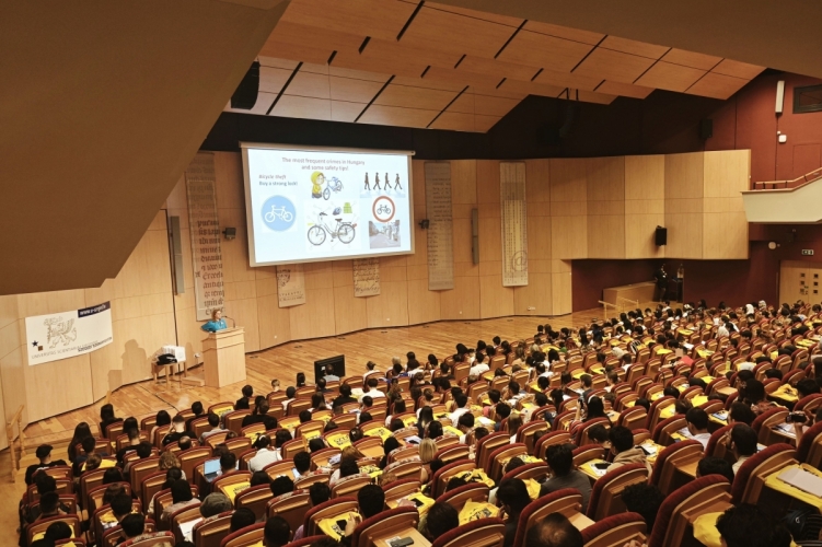A bűnmegelőzési osztály egyik munkatársa tartott prevenciós előadást az SZTE József Attila Tanulmányi és Információs Központ Kongresszusi termében.