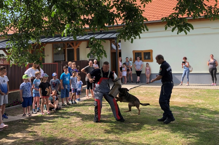 Kutyás bemutatót láthattak és fontos bűnmegelőzési tanácsokat kaptak a táborozó tanulók.