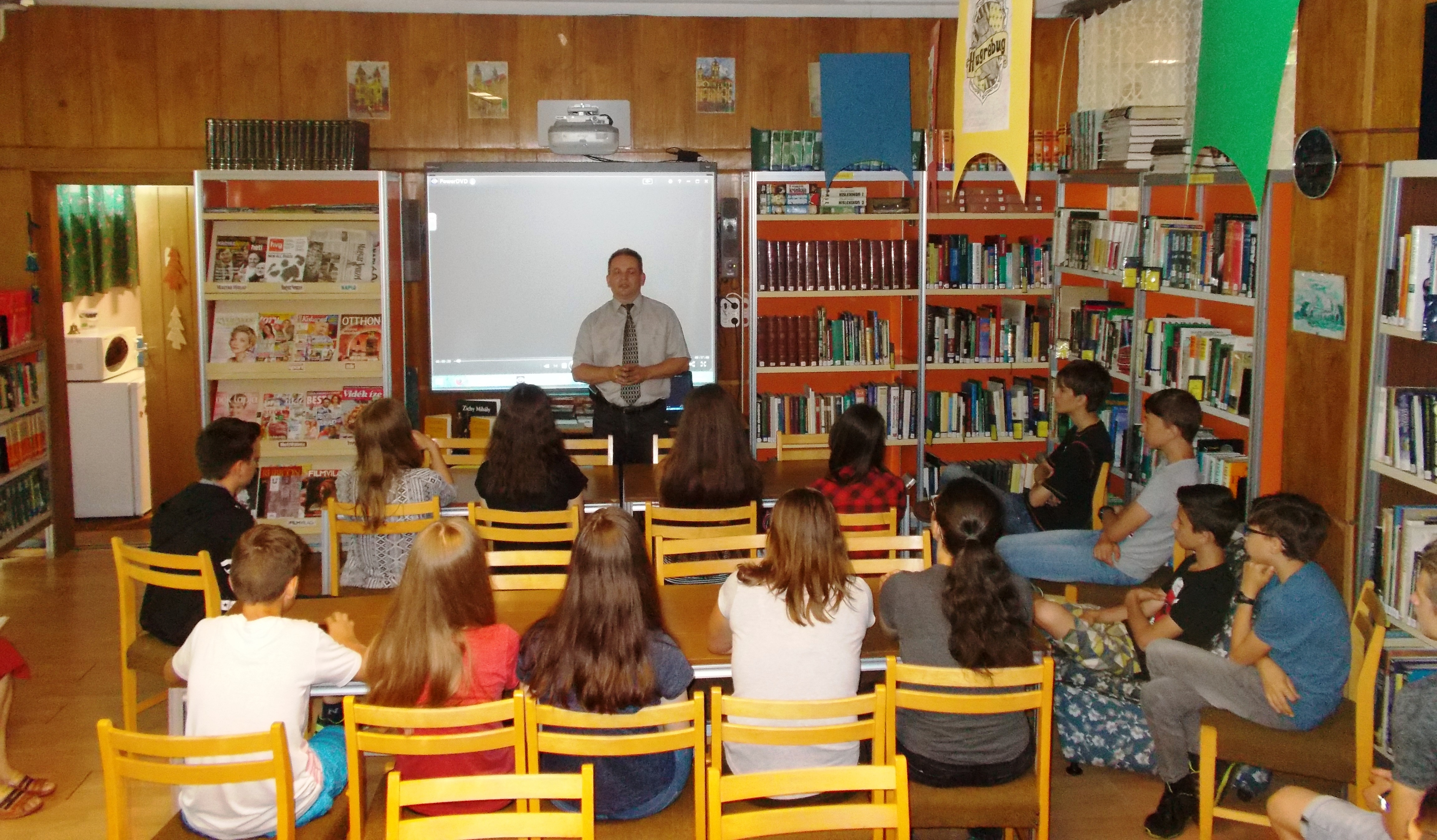 Egy gyermekkönyvtárban tartott előadást a Hajdú-Bihar Megyei Rendőr-főkapitányság bűnmegelőzési munkatársa.