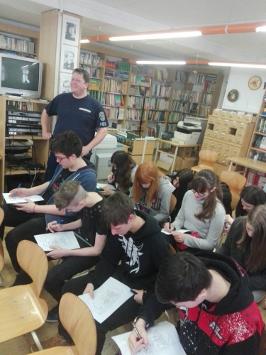 A nyolcadikos gyerekek tesztlap kitöltésével tették próbára ismeretüket, hiszen ők már tavaly is hallhatták az Iskola Rendőre és a bűnmegelőzési előadó intelmeit drogprevenciós témakörben.