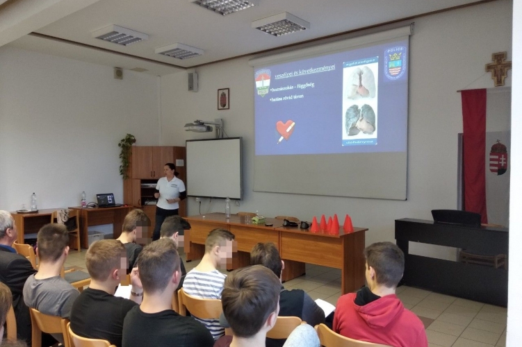A Győr-Moson-Sopron Megyei Rendőr-főkapitányság Bűnmegelőzési Osztály munkatársa legális és illegális drogok negatív hatásairól tartott interaktív előadást egy győri szakközépiskola diákjainak.