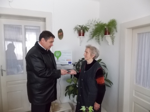 Rendőrségi segélyhívó telefont adott át a bonyhádi rendőrkapitány egy egyedül élő idős néninek Kisvejkén.
