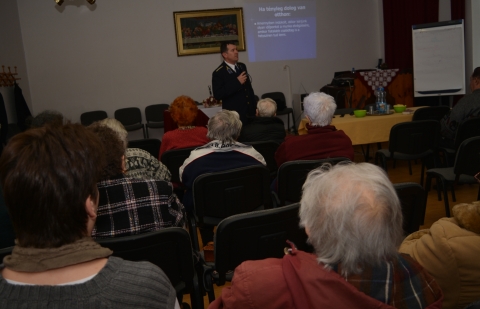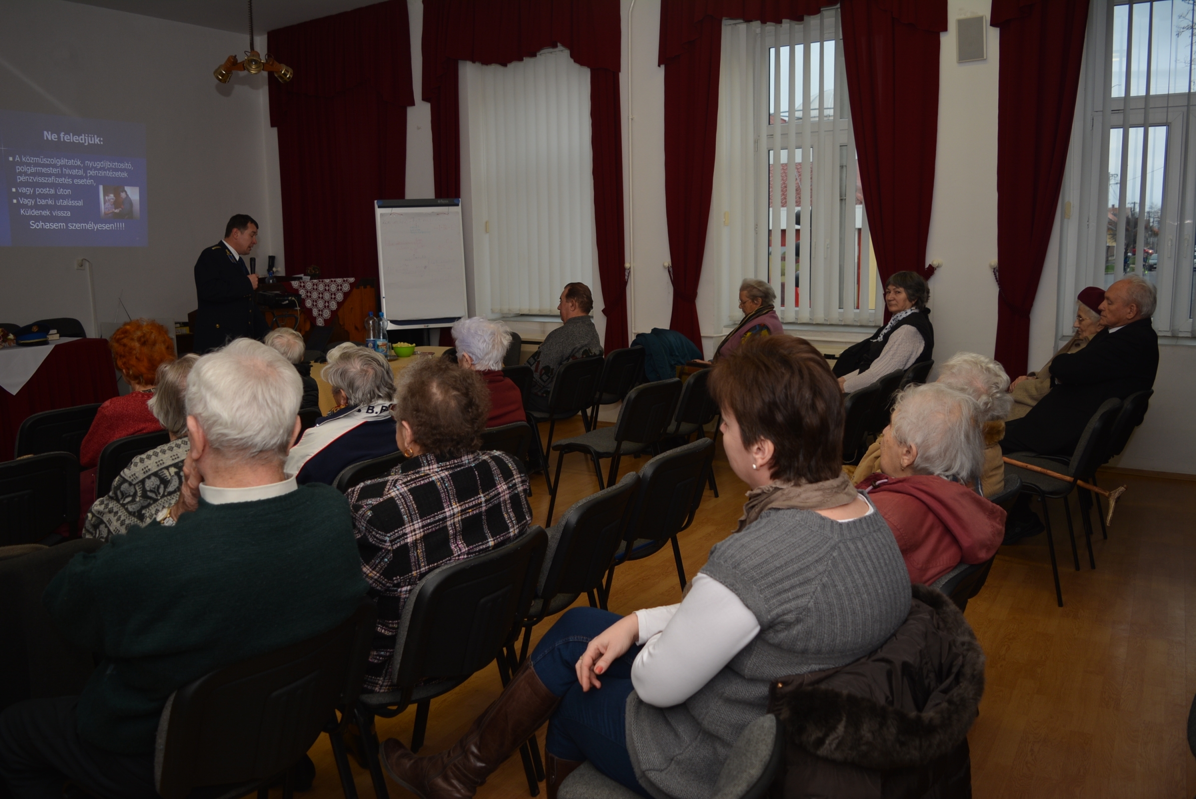 A Hajdúszoboszlói Rendőrkapitányság bűnmegelőzési előadója időseknek tartott áldozatvédelmi előadást.
