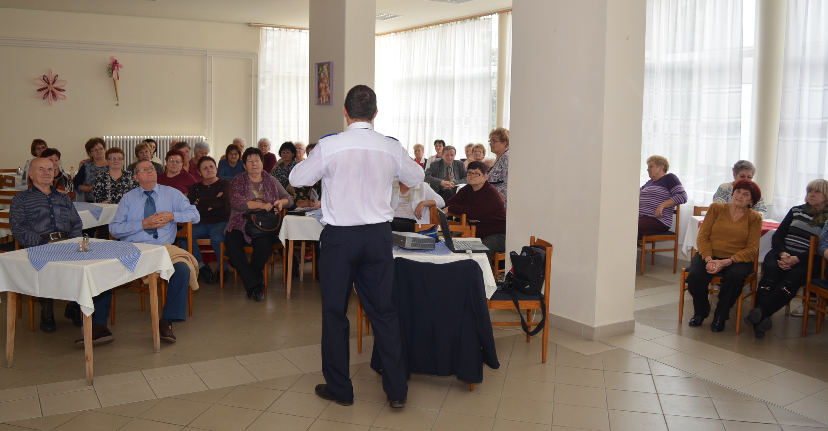 Karácsony Béla r. százados, a Hajdúszoboszlói Rendőrkapitányság bűnmegelőzési tanácsadója 2015. november 10-én az egyik helyi hotelben pihenő, az Életet az Éveknek Nyugdíjas Klubok, valamint a Kárpátaljai Nyugdíjasok tagjai részére tartott előadást. A szakember felhívta a főként egyedül élő idősek figyelmét, azokra a dolgokra, amelyeket saját biztonságuk érdekében megtehetnek, hogy ne váljanak bűncselekmények áldozatává, illetve arra, hogy milyen óvintézkedéseket tehetnek a hozzájuk becsengető idegenekkel szemben. Az előadó óva intette a nyugdíjasokat attól, hogy házalókat engedjenek be otthonaikba, továbbá felhívta a figyelmet arra, hogy a szolgáltatók munkatársaitól mindig kérjenek igazolványt, a hideg közeledtével megjelenő faárusok nevét, elérhetőségét és rendszámát pedig jegyezzék fel. Ezenkívül, tájékoztatást kaptak a nyugdíjasok a tömegben, például piacon, vagy tömegközlekedési eszközökön rájuk leselkedő veszélyekről.