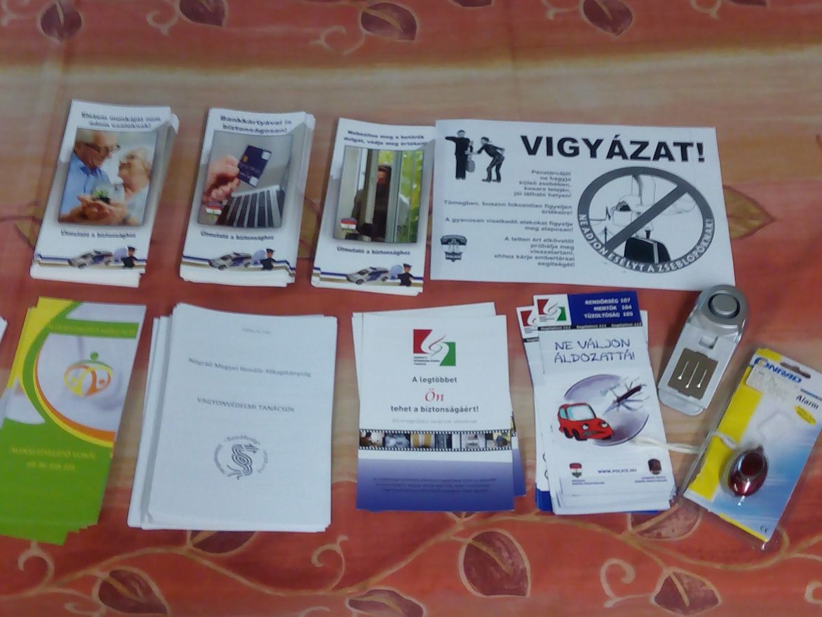 Az előadás témája volt főként a házaló árusok, egyéb módszerrel bejutni szándékozó idegenek otthonaikba történő beengedésének veszélye, a telefonos csalások áldozattá válásának megelőzése. A részt vevők az időskorúakat - mint kiemelt kockázatú csoportot - veszélyeztető helyzetek kezelésének módszereiről és a helyes magatartásról kaptak tájékoztatást.