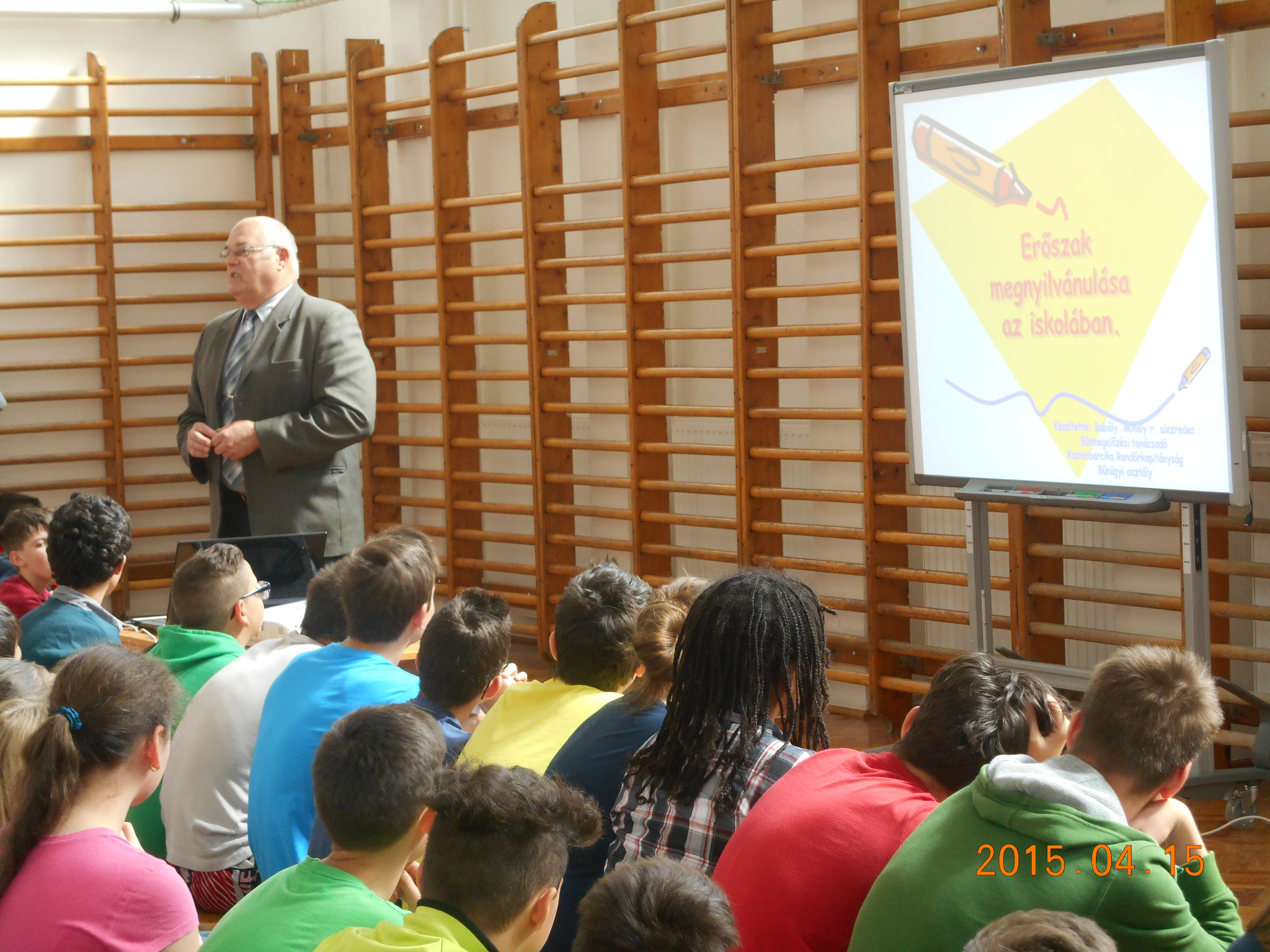 Babály Mihály r. alezredes, bűnmegelőzési előadó Szabó Piroska r. főtörzsőrmester, iskolarendőrrel közösen 2015. április 15-én, a kazincbarcikai Pollack Mihály Általános Iskola Árpád Fejedelem Téri Tagiskolájában az iskolai erőszakkal szembeni védekezés és megelőzés módjairól adott a diákoknak megszívlelésre érdemes tanácsokat. A bűnmegelőzési szakemberek egyben utaltak az egymásra figyelés fontosságára.