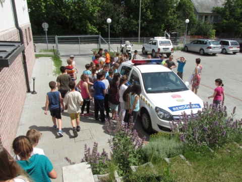 A rendőri munka sokrétűségének bemutatására először a „rabosítás” részleteivel, eszközeivel ismerkedhettek meg, ennek során a gyerekek az ujjnyomat-vételről tették fel a legtöbb kérdést. Izgalmas élmény volt a gyerekek számára az előállító helyiség vastag, rácsos ajtaja mögötti bezártság érzése; mindannyian úgy nyilatkoztak, nem szeretnének oda felnőttként visszakerülni. Természetesen nem maradhatott el a szolgálati járművek kipróbálása sem. A záporozó kérdések közepette a szolgálati gépkocsik mellett egy rendőrmotort is megmutatott a kisiskolásoknak Vágfalvi Attila rendőr százados.