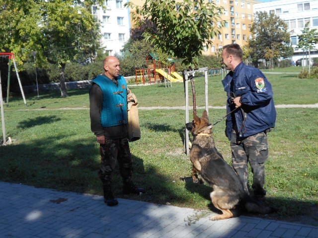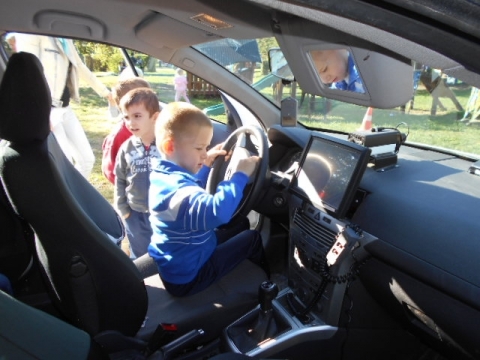 Természetesen nem hiányozhatott a járőrautó sem, amibe be lehetett ülni és meg lehetett szólaltatni a szirénát. A gyerekek hamar megbarátkoztak a rendőrökkel, akik tenyérlenyomatot készítettek és fényvisszaverős matricával ajándékozták meg őket. Takács Krisztián címzetes rendőr zászlós a Veszprém Megyei Rendőr-főkapitányság Bűnügyi Technikai Osztály bűnügyi kutyavezetője a szolgálati kutyáival és őrző-védő, fegyelmező, nyomkövető technikai bemutatót tartott.