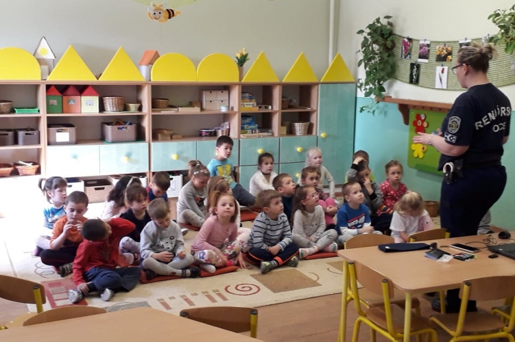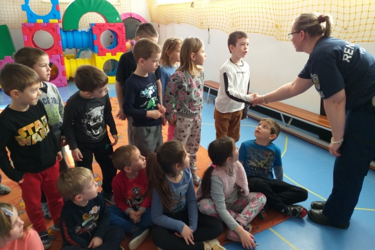 Az Érdi Rendőrkapitányság az Ovi-Zsaru program keretében az otthoni veszélyhelyzetekre hívta fel a gyerekek figyelmét 2019. március 26-án a Százhalombattai Kipp-Kopp Óvodában.