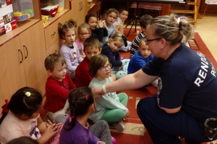 A gyermekek körében kedvelt prevenciós program ezúttal a Hold utcai óvoda csoportjainak közvetített hasznos bűn- és balesetmegelőzési tanácsokat.