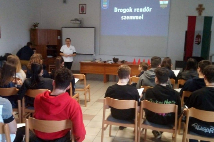A Győr-Moson-Sopron Megyei Rendőr-főkapitányság Bűnmegelőzési Osztályának munkatársa a legális és illegális drogok negatív hatásairól tartott interaktív előadást egy győri szakközépiskola diákjainak.