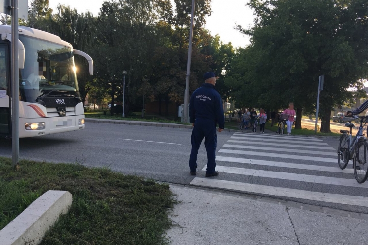 A Csornai Rendőrkapitányság iskolarendőrei - szeptember hónapban – az illetékességi területükön található iskoláknál segítik a gyermekek úttesten történő biztonságos átkelését.