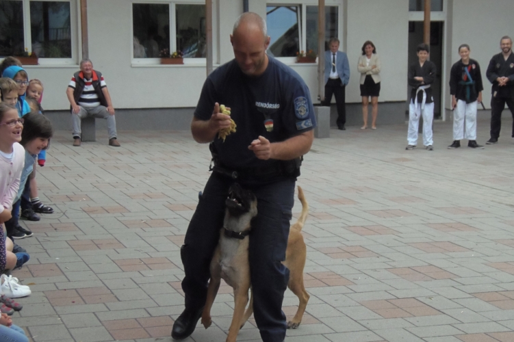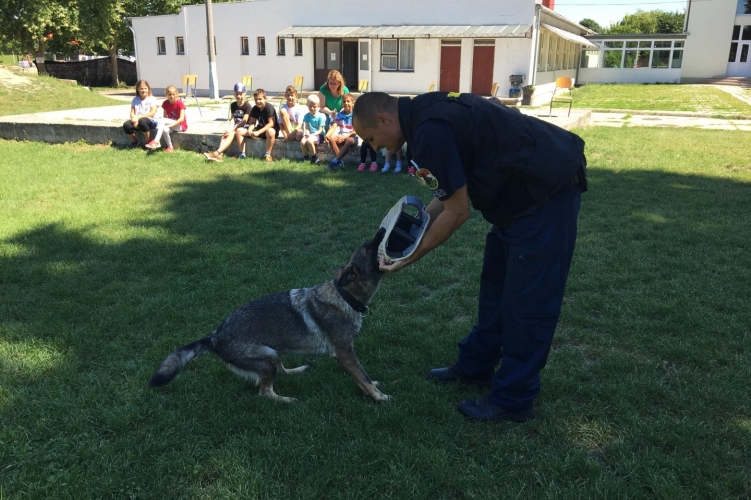 Az érdi rendőrök egy nyári táborban tartottak kutyás bemutatót.