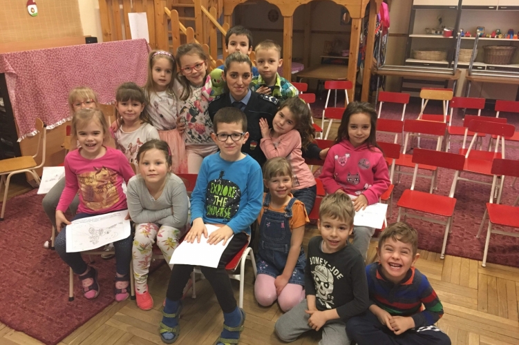 A Monori Rendőrkapitányság bűnmegelőzési előadója 2018. március 29-én a pilisi Játékország Óvoda, Gesztenyéskert Tagóvodájában járt.