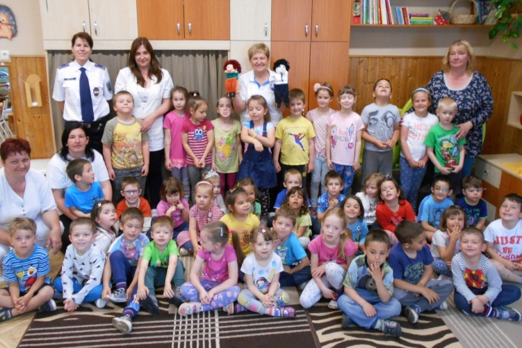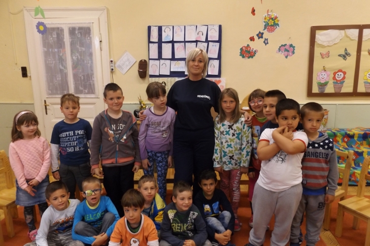 Óvodás gyermekeknek tartott bűn- és baleset-megelőzési előadást a Várpalotai Rendőrkapitányság munkatársa.