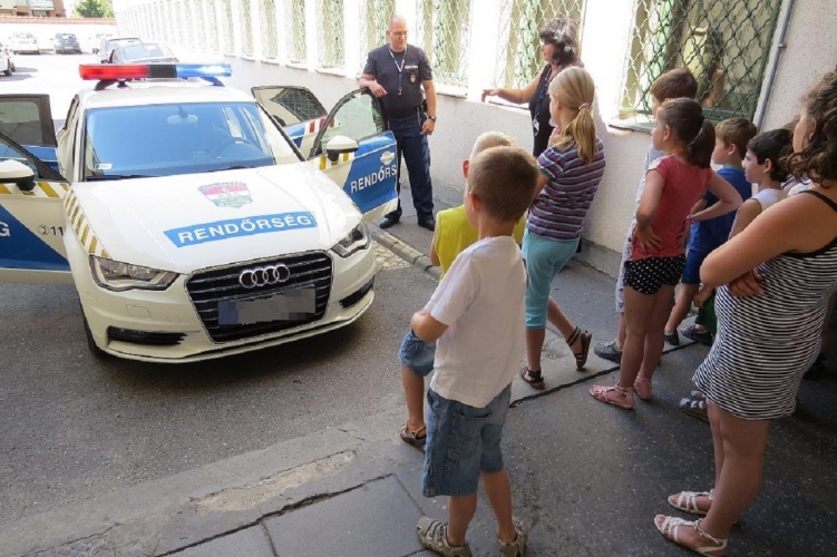 A diákok óriási tapssal köszönték meg a rendőröknek a nyári tábor első napján nyújtott élményeket és ismereteket.